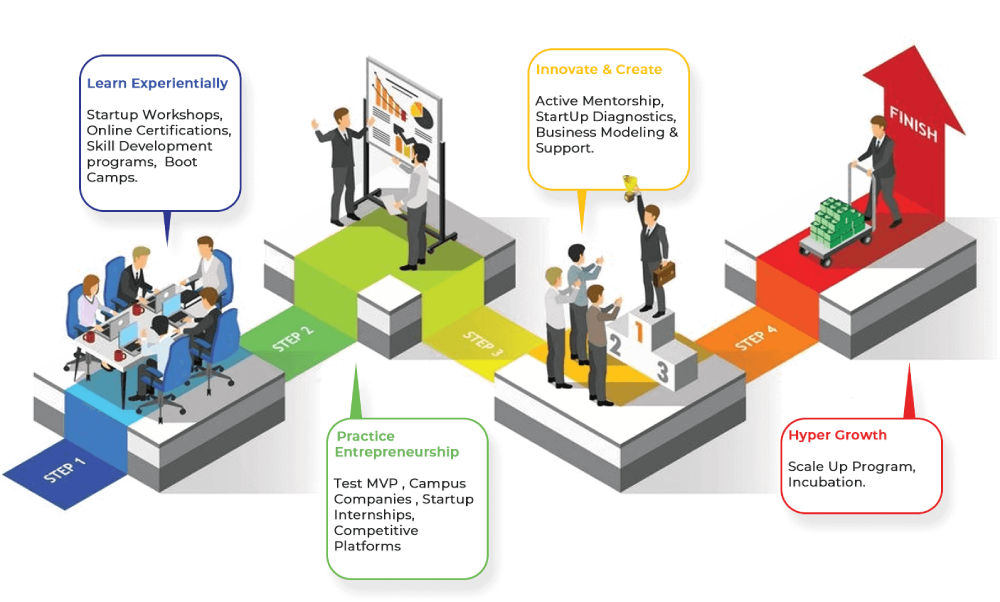 Steps To StartUpWe empower you with an entrepreneurial mindset and skills by providing you high quality experiential entrepreneurial education thus enhancing your growth, encouraging intrapreneurship and driving sustainable entrepreneurship.